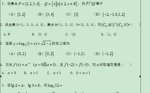 湖北省黄石市有色一中12-13学年高一上学期期中考试(数学)