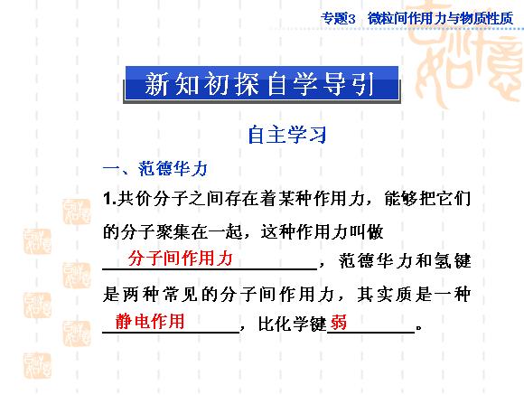 2013年化学苏教版选修3精品课件:专题3 第四单元 分子间作用力 分子晶体