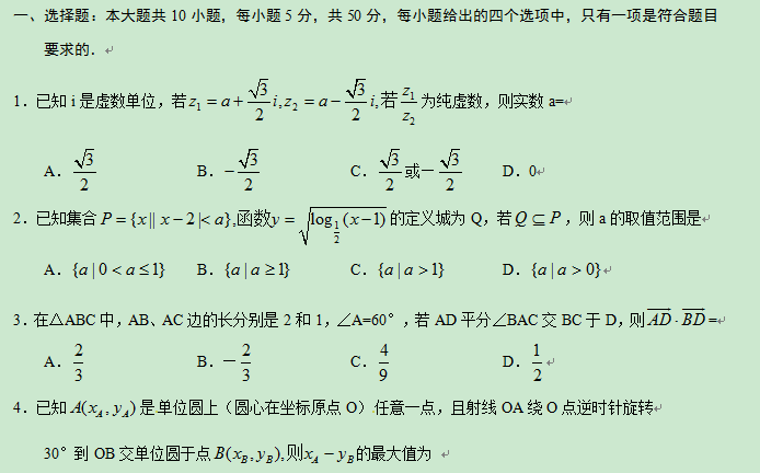 安徽省名校联盟2013届高三第一次联考(数学理)
