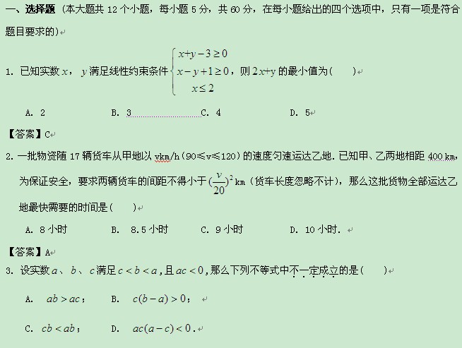 黑龙江省哈尔滨市2013届高三数学二轮复习专题能力提升训练一:不等式 Word版含答案