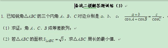 江苏省高邮市界首中学高三数学备战二模解答题训练(3)(学生版)