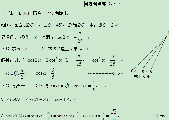 江苏省高邮市界首中学高三数学第二轮复习解答题训练(7)(教师版)