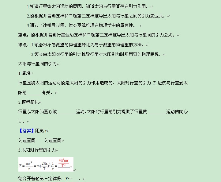【jb1000精品】高一下期末考试必备复习学案(6大环节高效复习):6.2太阳与行星间的引力