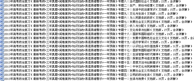 【打包】2013年高考政治复习(最新考纲+三年真题+阅卷案例+知识归纳+易混易错警示+一年预测)专题(20份)