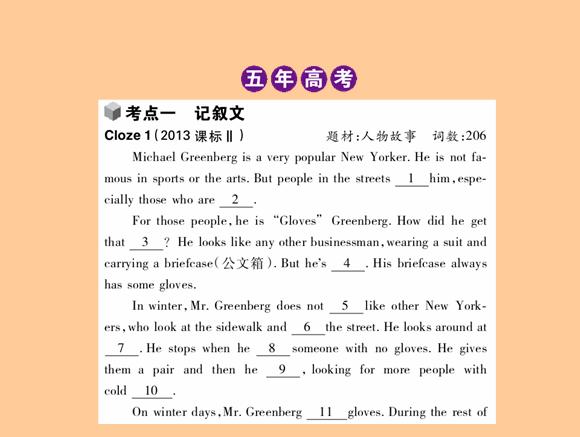 2014《5年高考3年模拟》高考英语课件:专题十三 完形填空(329张PPT)(B版新课标)