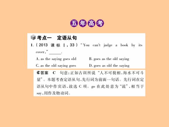 2014《5年高考3年模拟》高考英语课件:专题九 定语从句和名词性从句(98张PPT)(B版新课标)