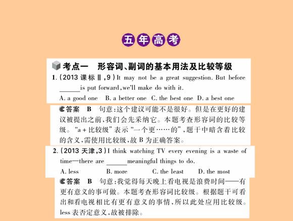 2014《5年高考3年模拟》高考英语课件:专题四 形容词和副词(69张PPT)(B版新课标)