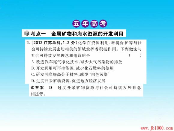 2014化学《5年高考3年模拟》课件:专题二十一 化学与自然资源的开发利用(45张PPT)(新课标用)