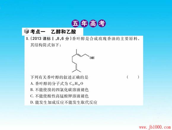 2014化学《5年高考3年模拟》课件:专题二十 生活中常见的有机物(59张PPT)(新课标用)