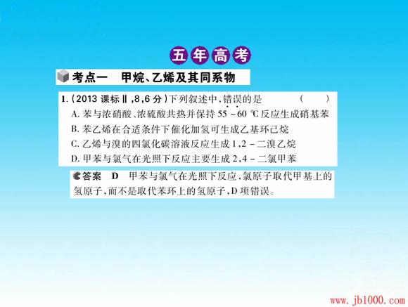 2014化学《5年高考3年模拟》课件:专题十九 几种常见的烃(72张PPT)(新课标用)