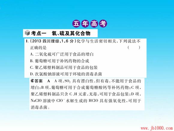 2014化学《5年高考3年模拟》课件:专题十七 氧、硫及其化合物和环境保护(83张PPT)(新课标用)