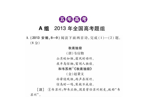 《5年高考3年模拟》2014年高考语文课件:专题13古代诗歌鉴赏