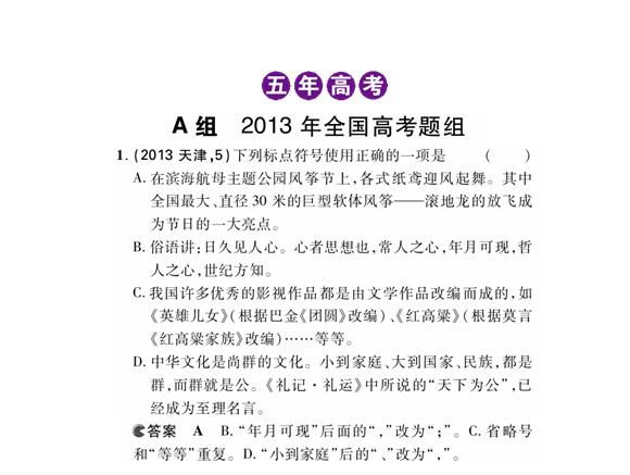 《5年高考3年模拟》2014年高考语文课件:专题3正确使用标点符号