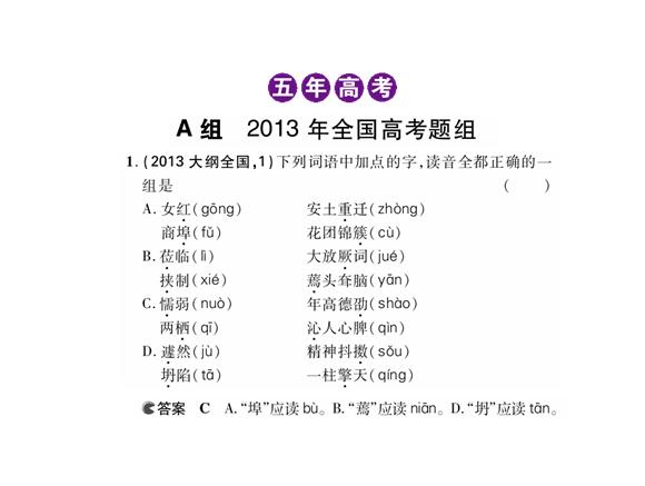 《5年高考3年模拟》2014年高考语文课件:专题1识记现代汉语普通话常用字的字音