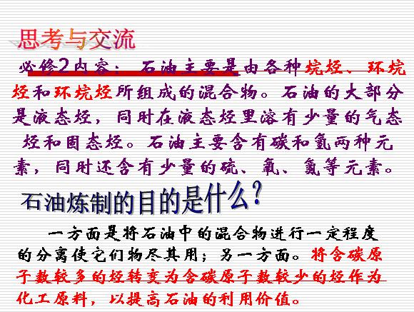 云南省弥勒县庆来学校化学(选修2)课件:2.3石油、煤和天然气的综合利用(人教版)