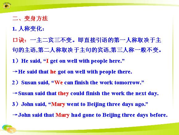 高二英语必修5语法专题课件:3. 直接引语和间接引语