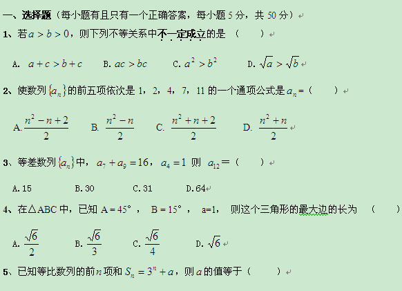 湖南省益阳市箴言中学2013-2014学年高二上学期9月月考试题 (数学理)