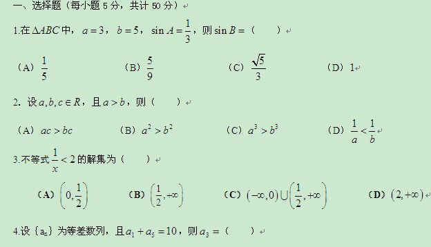 陕西省咸阳市三原县北城中学2013-2014学年高二上学期期中考试(数学理)