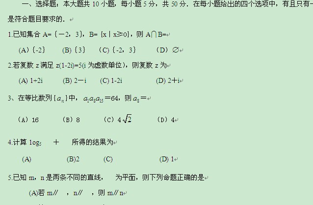 四川省成都市2014届高中毕业班第一次诊断性检测(数学文)