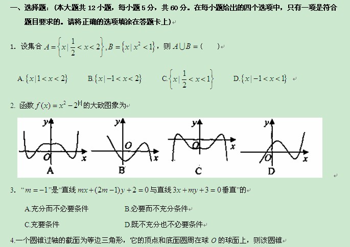 甘肃省天水市秦安县2014届高三上学期检测测评(期末)(数学)