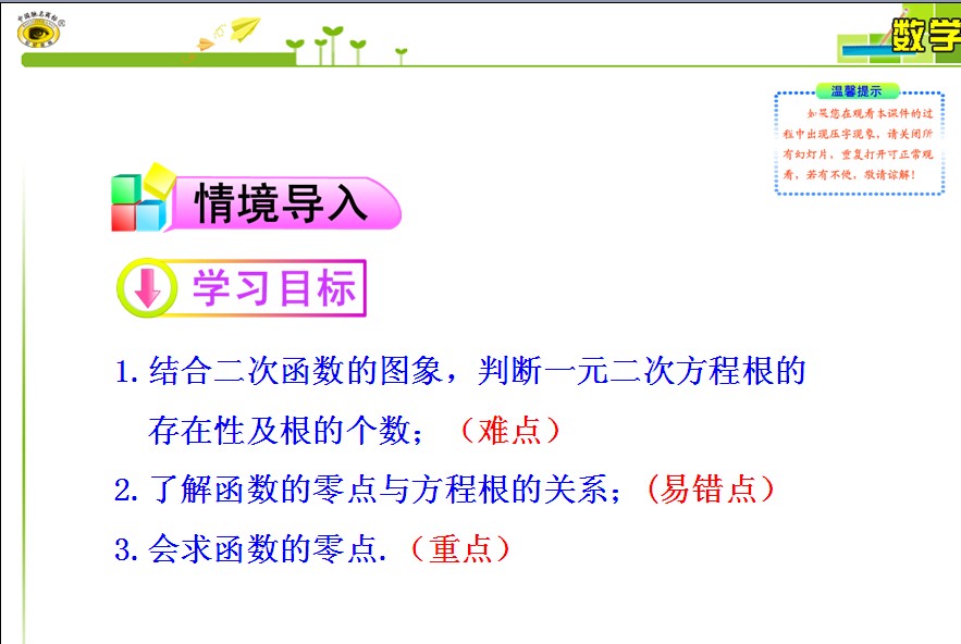 2013版高中全程学习方略多媒体课件:3.1.1 方程的根与函数的零点(人教A版必修1)