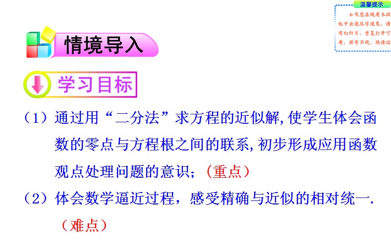 2013版高中全程学习方略多媒体课件:3.1.2 用二分法求方程的近似解(人教A版必修1)