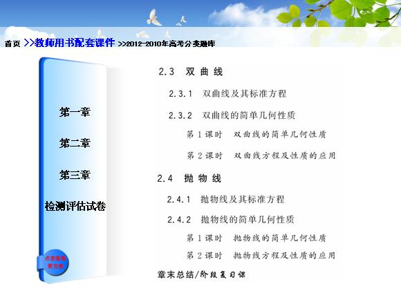 12版高中数学同步配套课件:目录(人教A版选修2-1)