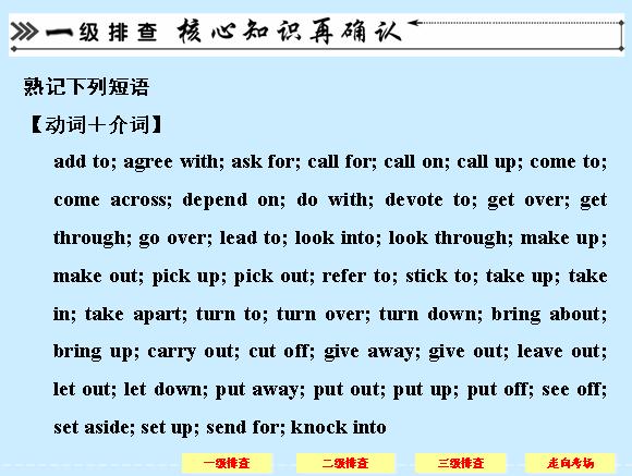 2014高考英语考前核心知识排查课件:专题13 高频动词短语