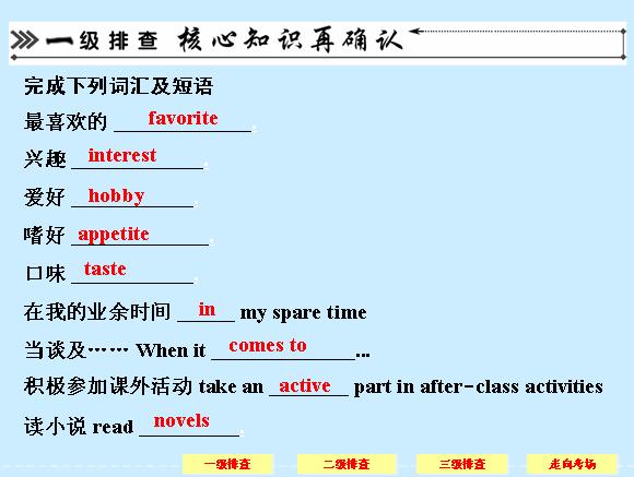 2014高考英语考前核心知识排查课件:专题8 兴趣与爱好