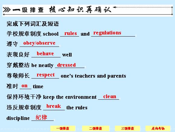 2014高考英语考前核心知识排查课件:专题6 校园学习、文明与安全