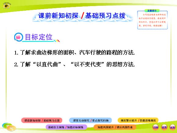 2012版高中数学同步配套课件:1.5.1&1.5.2曲边梯形的面积&汽车行驶的路程(人教A版选修2-2)