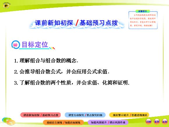 2012版高中数学同步配套课件:1.2.2.1组合与组合数公式(人教A版选修2-3)