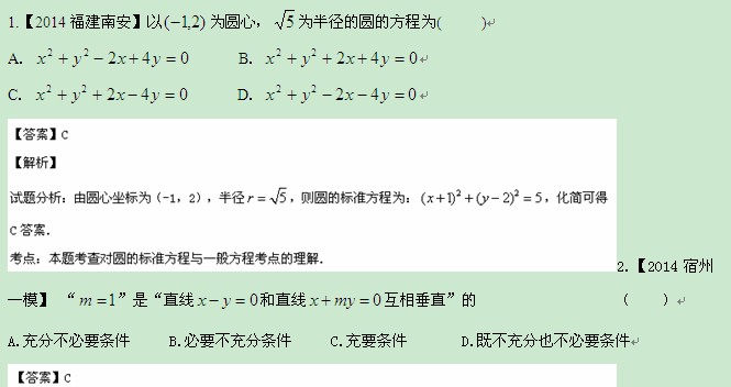 福建,安徽版(第03期)-2014届高三名校(数学理)分省分项汇编:专题8.直线与圆 (解析版)