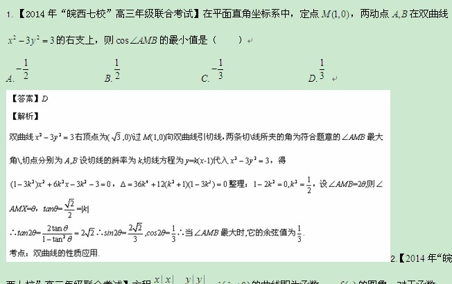 福建,安徽版(第03期)-2014届高三名校(数学理)分省分项汇编:专题9.圆锥曲线 (解析版)