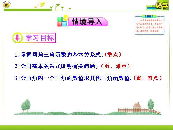 2013版高中全程学习方略多媒体课件:1.2.2 同角三角函数的基本关系(人教A版必修4)