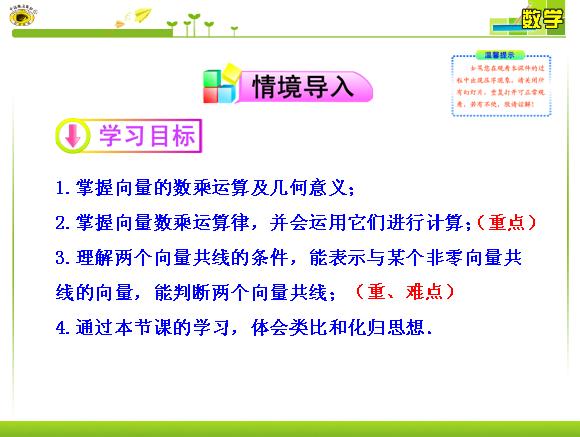 2013版高中全程学习方略多媒体课件:2.2.3 向量数乘运算及其几何意义(人教A版必修4)
