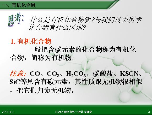 化学必修2精品课件:第3章 第1节 最简单的有机化合物—甲烷(第1课时)(江西鹰潭一中)