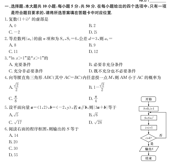 湖南省2014届高三·十三校联考第二次考试(数学文)PDF版含答案