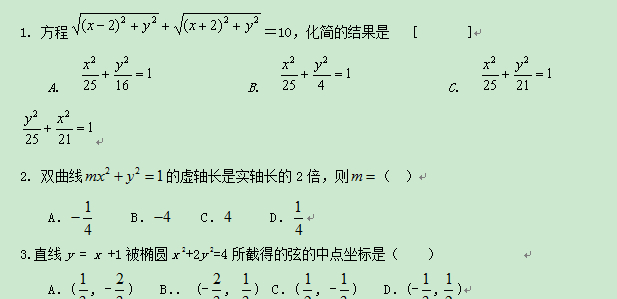 内蒙古集宁一中(东校区)2012-2013学年高二下学期第一次阶段测试(数学理)(无答案)Word版