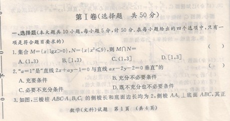 陕西省榆林市2014届高三第二次测试试题(数学文)扫描版