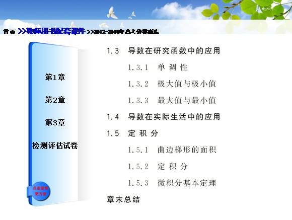 2012版高中全程学习夺冠方略配套课件:目录(苏教版选修2-2)