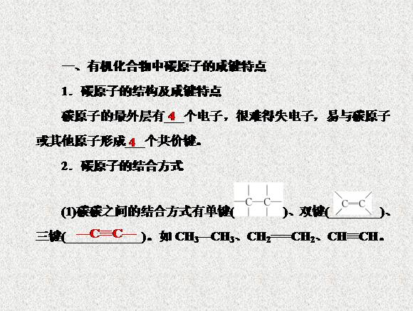 13-14人教版化学选修5练习课件:1.2 有机化合物的结构特点1