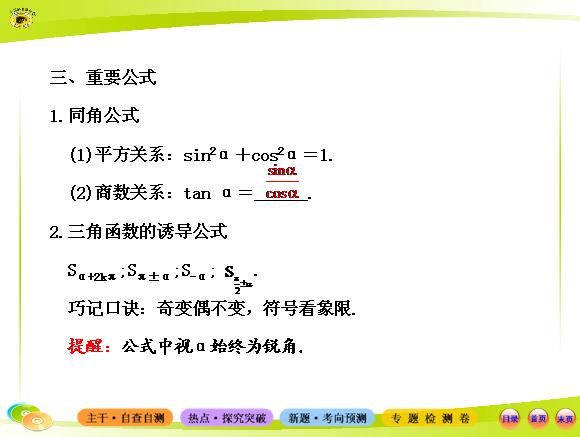 2013版高考数学专题辅导与训练配套课件:3.1任意角的三角函数及三角恒等变换(陕西专供-数学理)