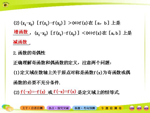 2013版高考数学专题辅导与训练配套课件:2.1函数的图象与性质(陕西专供-数学文)