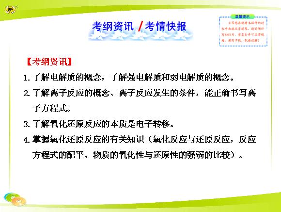 安徽2014年高考化学冲刺精品课件:1.3 离子反应 氧化还原反应