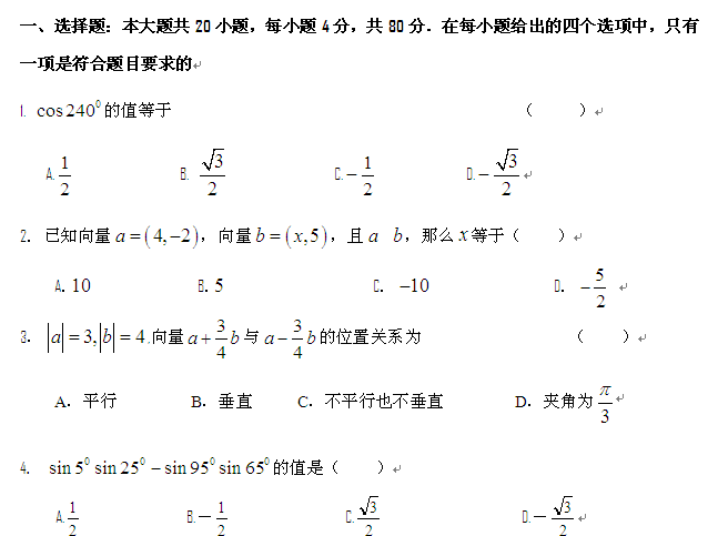 山东省济南一中2013-2014学年高一下学期期中考试(数学)