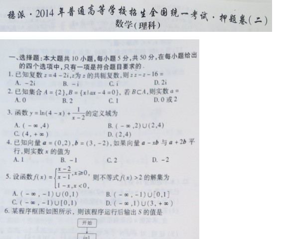 湖北省稳派教育2014年普通高等学校招生全国统一考试·押题卷(二) (数学理) 扫描版