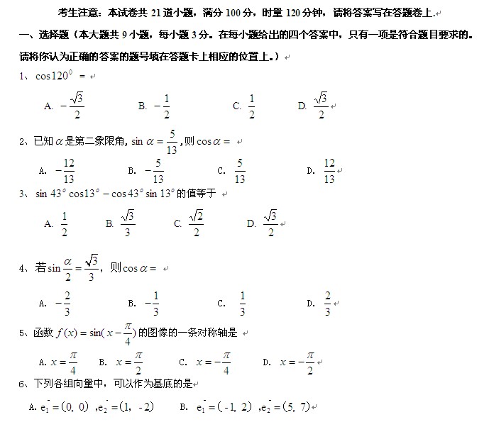 湖南省衡阳市八中2013-2014学年高一下学期期中考试(数学)