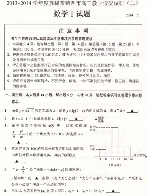 江苏省苏锡常镇四市2014届高三5月教学情况调研(二)(数学)扫描版