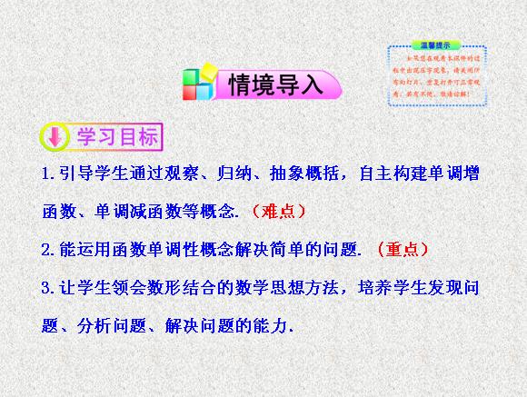 2013版高中同步数学多媒体课件:2.2.1 第1课时 函数的单调性(苏教版必修1)